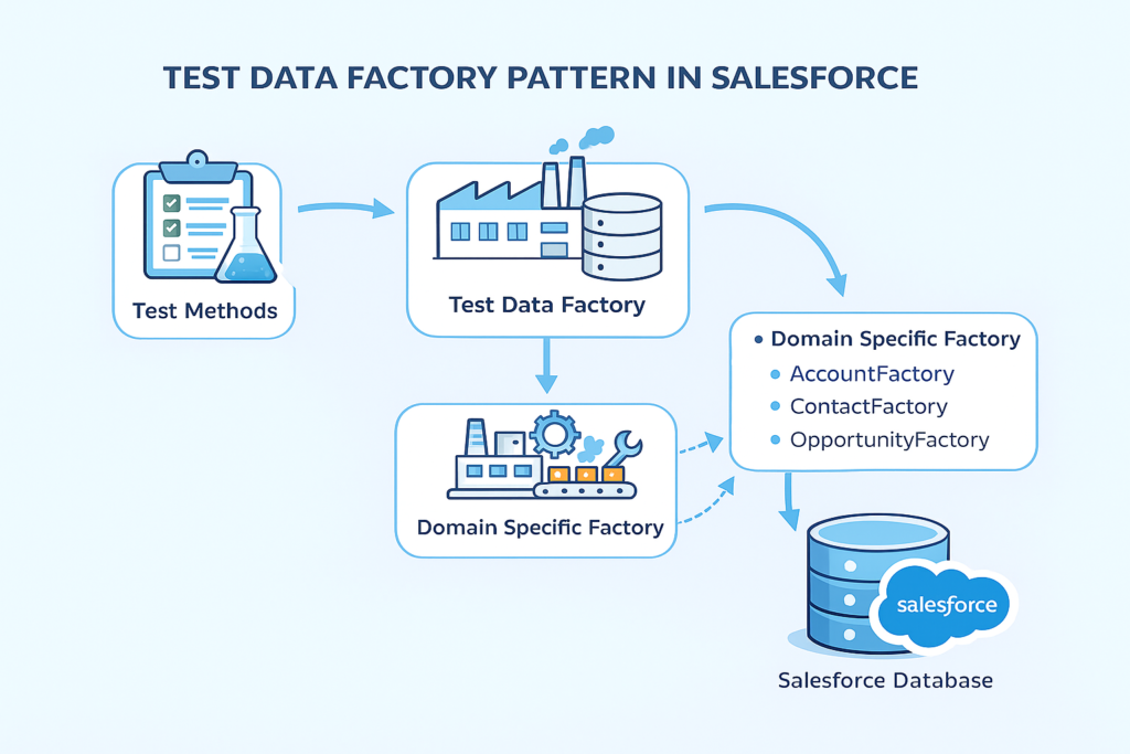 In this blog, we will understand Test Data Factory Pattern in Salesforce in simple English, with real-life examples, so that you enjoy reading, learn something useful, and feel confident to use it in real projects.